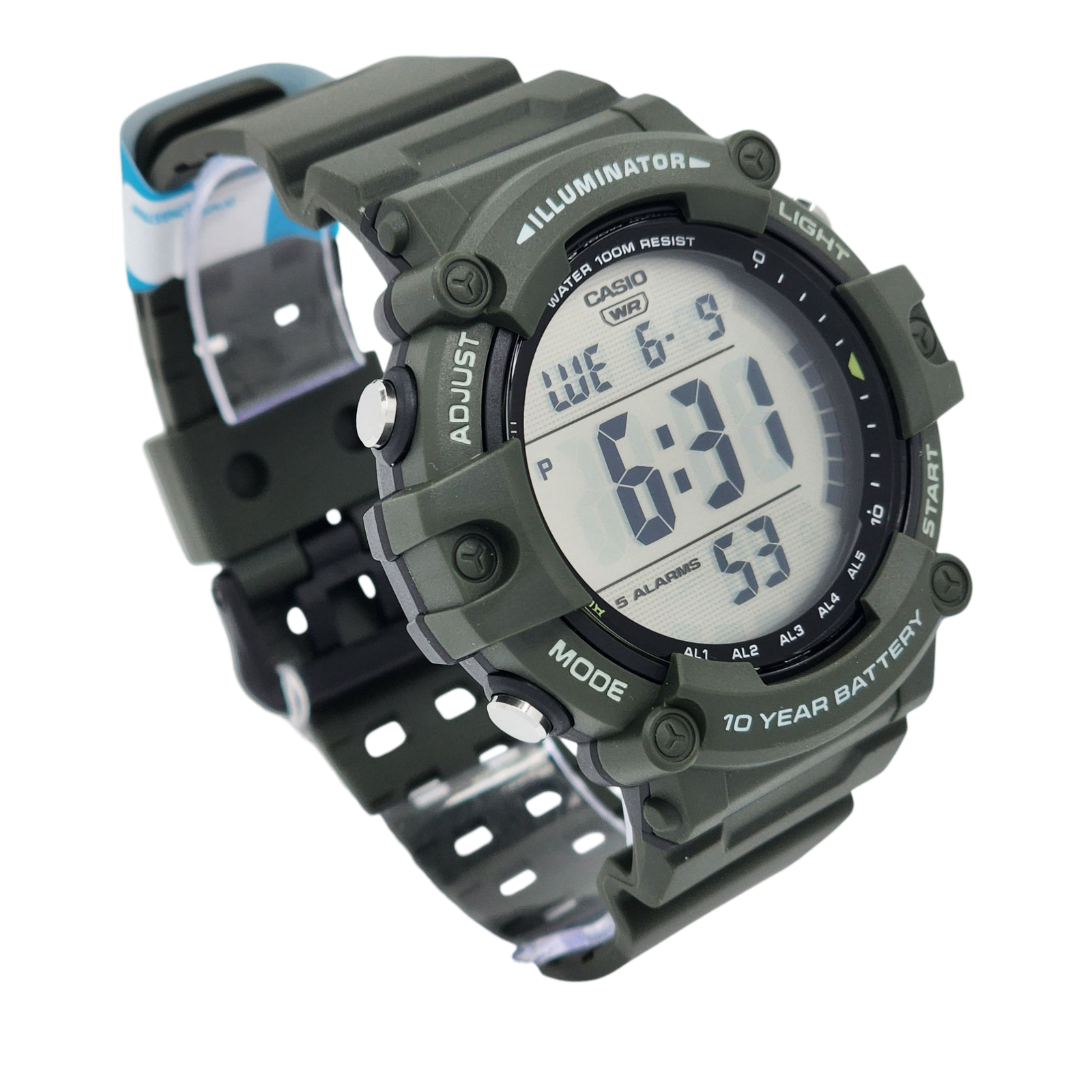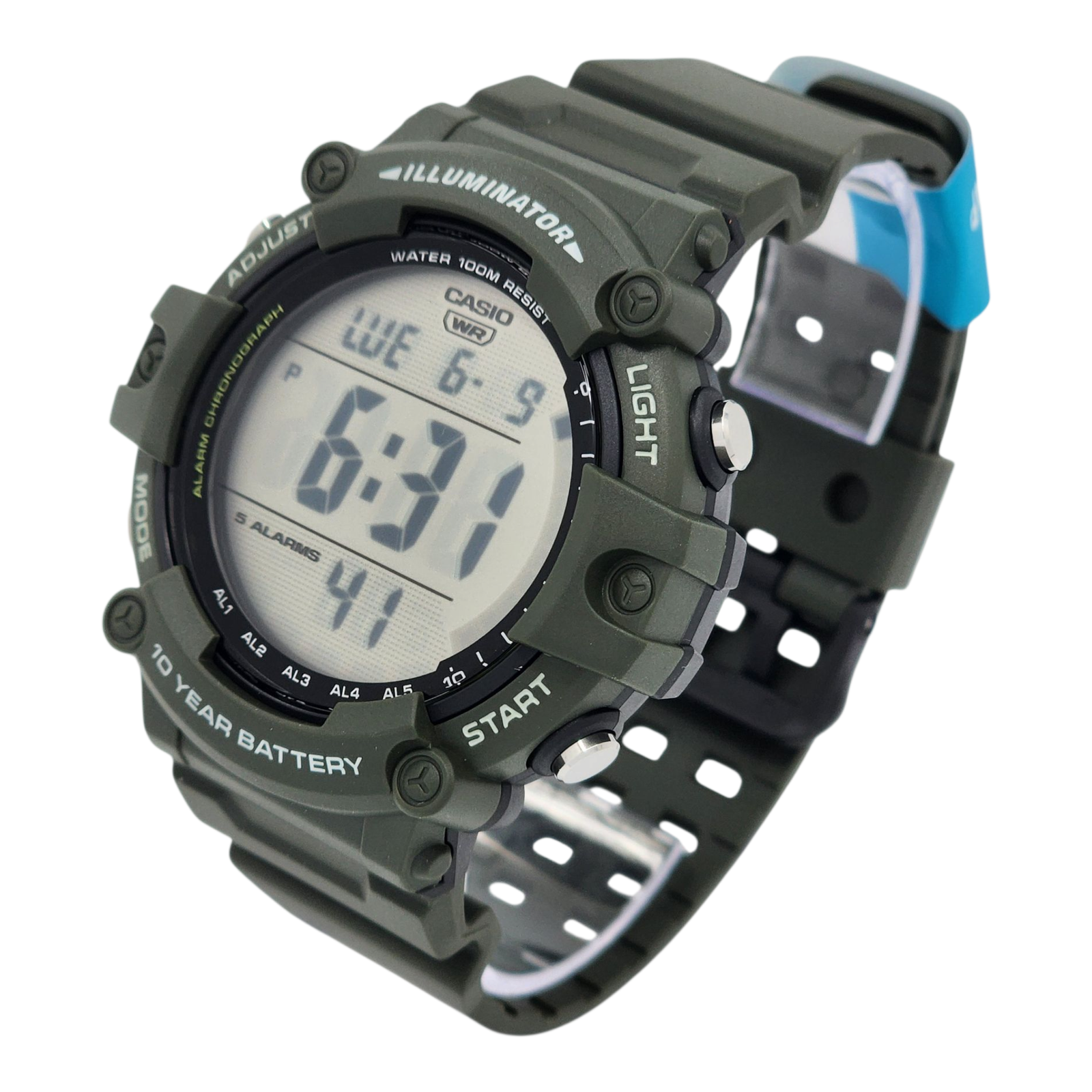Reloj Pulsera Digital Casio AE-1500WHX-3AV Con Correa De Resina Color Verde - Fondo Gris